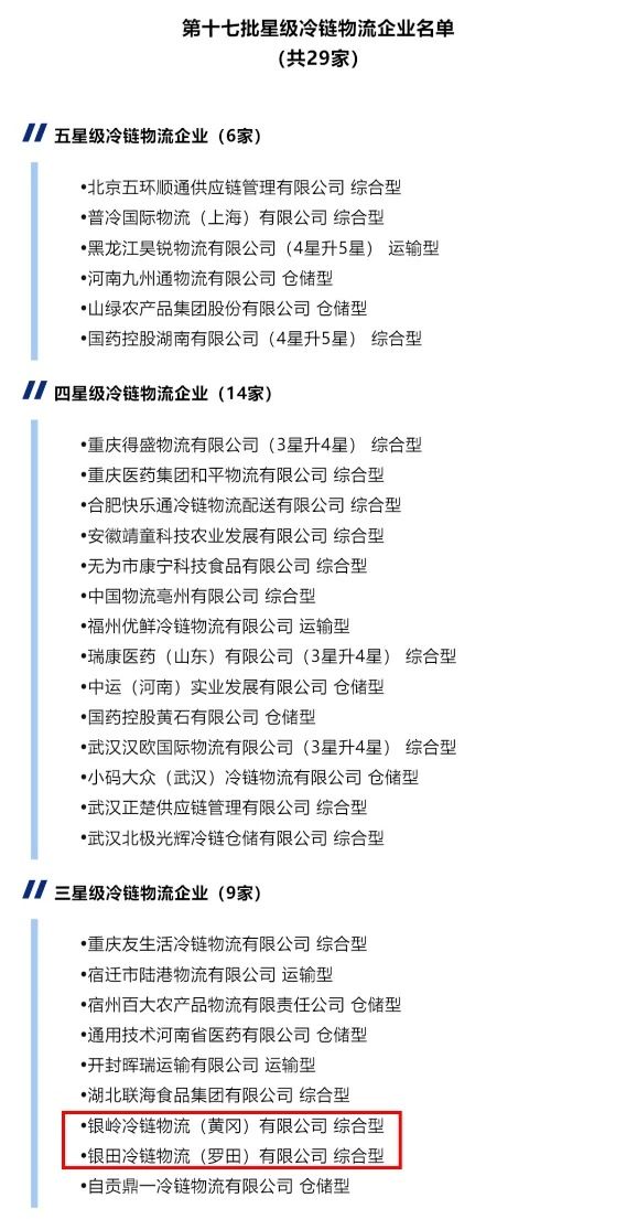 隨著羞羞视频APP下载冷鏈成人羞羞国产免费软件(黃岡)有限公司、銀田冷鏈成人羞羞国产免费软件(羅田)有限公司成功通過國家三星級冷鏈成人羞羞国产免费软件企業認定,三峽羞羞视频APP下载冷鏈目前已擁有五星級冷鏈成人羞羞国产免费软件企業1家、三星級冷鏈成人羞羞国产免费软件企業2家,運營的冷鏈基地達到8個,冷庫現有庫容量超過70萬m³,冷庫容量規模居全省第一。